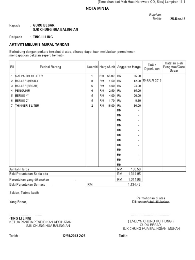 Nota Minta Aktiviti Melukis Mural Tandas Pdf